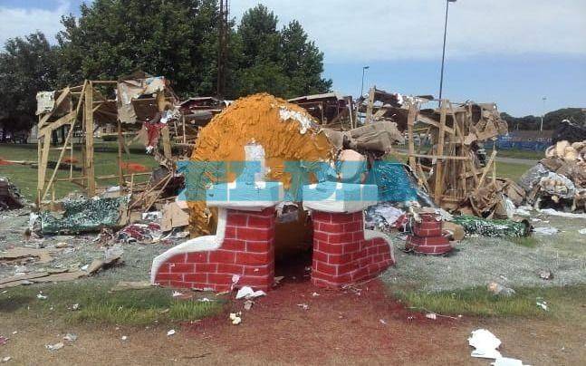 Esta mañana, tras el paso de la feroz tormenta, dos de los momos que tal vez se encontraban entre los de mayor producción en esta nueva edición, devinieron completamente en ruinas conformando un cuadro que echó por tierra la ilusión de los grupos que durante largos meses estuvieron trabajando en todos los detalles para llegar en tiempo y forma a la madrugada del 1 de enero de 2019.