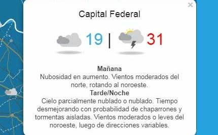 Para el lunes el organismo pronosticó mejoras con nubosidad en disminución, vientos leves de direcciones variables y temperaturas que se ubicarán entre 20 y 33 grados.