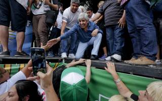 Cuando el camionero sostenía ante la abigarrada multitud que “no existe una sola causa judicial” en la que esté imputado y, en el momento en el que indicaba que “esas acusaciones son todas estupideces, barbaridades e inventos de los funcionarios y de un sector del periodismo”, los manifestantes comenzaron a gritar: “Mauricio Macri la p...”.