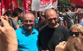 En tanto que el palco se vistió de “fiesta” y hubo confraternidad, diálogos reiterados y gestos entre los dirigentes que participaron en la protesta desde un muy variado arco ideológico.