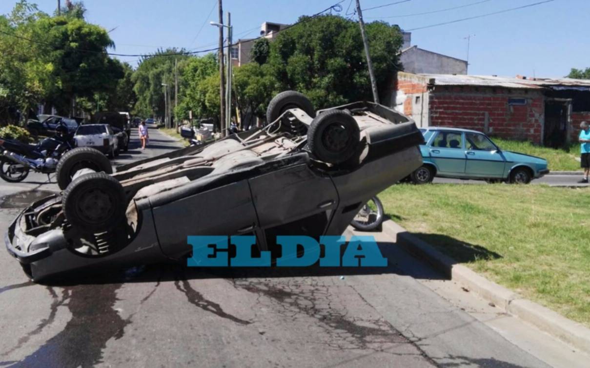 Una moto y un auto protagonizaron esta mañana un choque en 117 y 76, donde el vehículo de mayor porte además dio un espectacular vuelco y quedó tendido sobre la calzada, reportaron fuentes policiales.