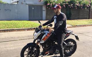 Sergio Andres Fernandez y las patentes de su moto Honda Nc 700, que se transformó en uno de los casos testigos de quienes reclaman por el fuerte incremento de los valores de las patentes a pagar por quienes tienen estos vehículos municipalizados.