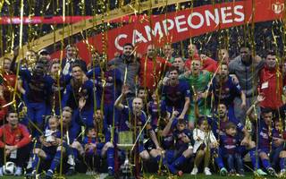 Para cerrar una noche mágica, el capitán catalán se encargó de levantar el trofeo que le entregó el Rey de España.