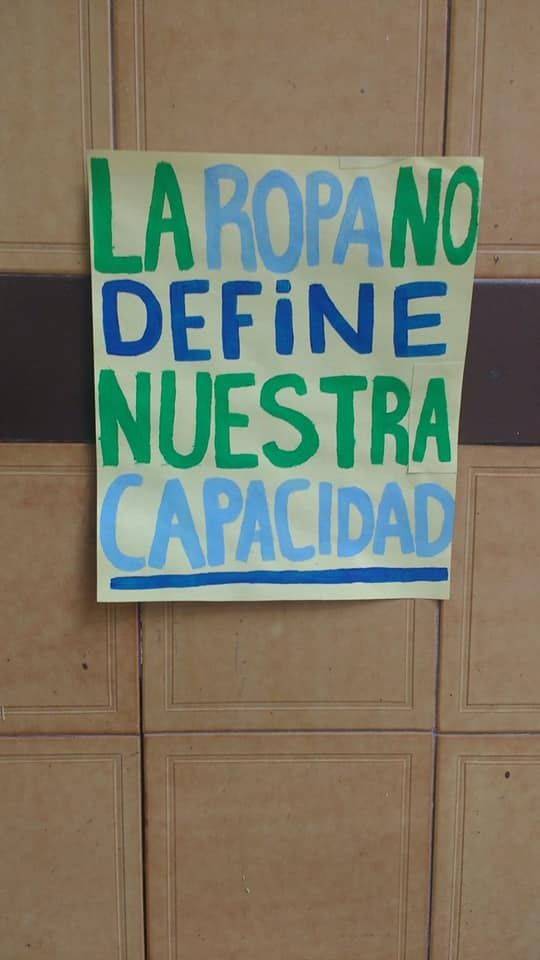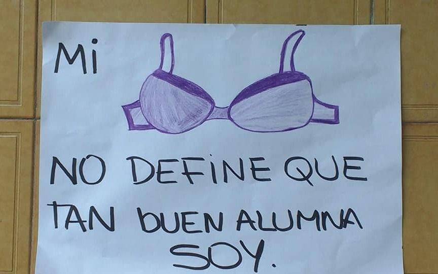 "Mi corpiño no define que tan buena alumna soy", "La cantidad de ropa que uso no determina la cantidad de respeto que merezco" y "La ropa no define nuestro rendimiento escolar" fueron algunas de las frases de los carteles que confeccionaron.