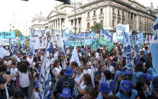 Cuando la movilización de ayer llegó hasta la Casa de la provincia de Buenos Aires que funciona en la CABA, dio comienzo el acto central. La jefa de la Feb, Mirta Petrocini, consideró que “pudo más la decisión de hacerse escuchar de los docentes que las acciones disciplinadoras de las autoridades, como los descuentos. Por eso hoy estemos acá, defendiendo a la educación pública”.
