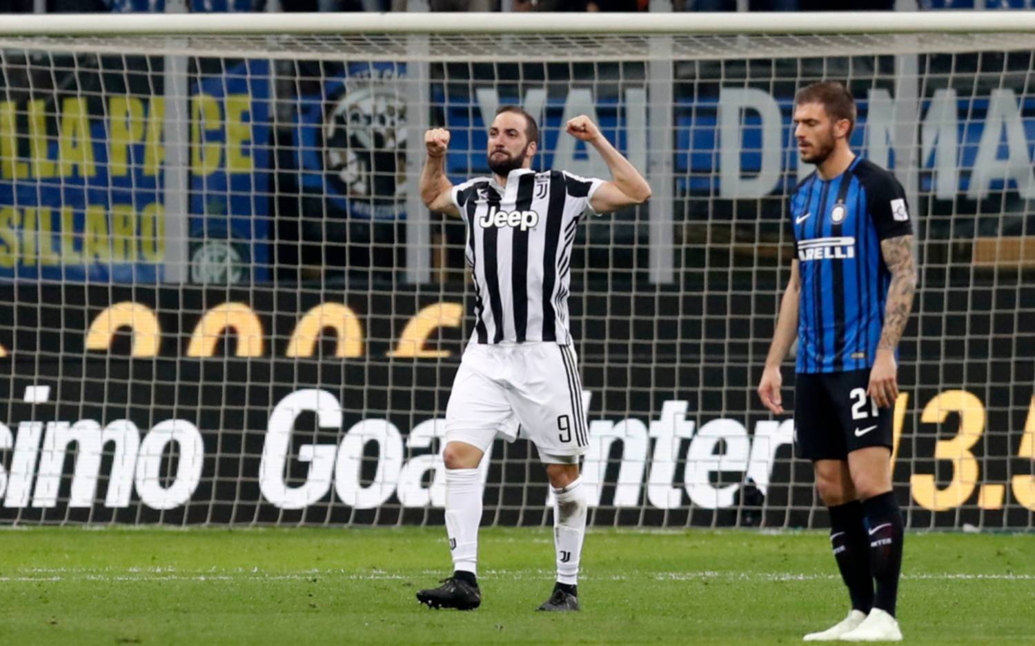El delantero Gonzalo Higuaín le dio hoy el triunfo a Juventus, líder de la liga italiana de fútbol de primera división, sobre Inter por 3-2 como visitante, en el marco de la 35ta. fecha de la Liga de Italia.