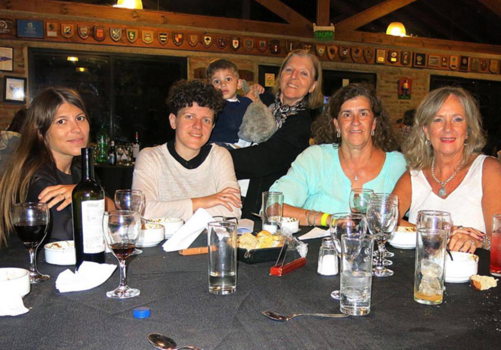 María Florencia y Virginia Zapico con Eva Ana Dracz, en brazos José Joaquin Roán, María Victoria Urrutia y Alicia De Falco