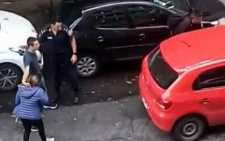 Los otros dos, junto a un hombre mayor que parece acercarse espontáneamente, miran hacia adentro del auto. Mientas ellos observan el habitáculo con el ladrón en la butaca del conductor, aparece una joven mujer, pareja del efectivo de civil, gesticulando y a los gritos.
