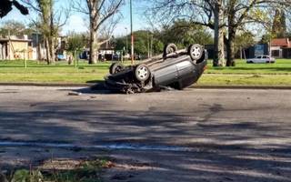 Volcó un auto tras chocar con una camioneta en 32 y 15