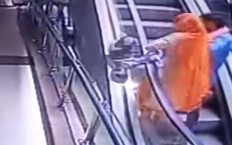 En las últimas horas se viralizó un trágico accidente que sucedió en el condado de Ganganagar, en la India, donde a una mujer que intentaba tomarse una selfie se le cayó su bebé de 10 meses en una escalera eléctrica.