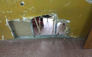 En el marco de la protesta llevada adelante en las primeras horas del martes en el interior del establecimiento, desde la comunidad educativa denunciaron que el último viernes por la mañana, durante la caudalosa lluvia que afectó a la región, se desprendió una parte del cielorraso que impactó sobre una alumna.