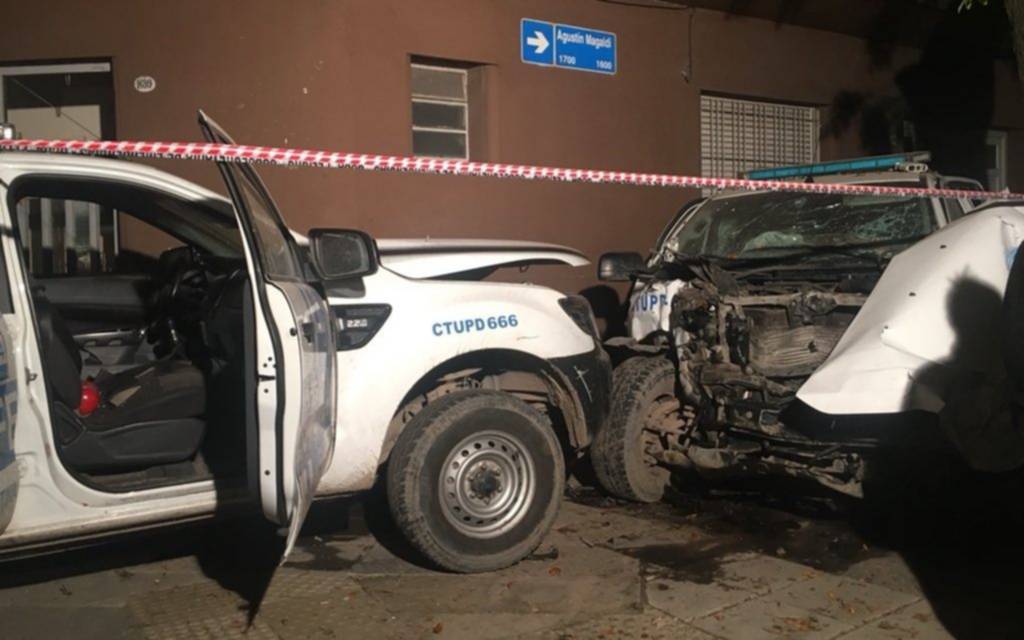 El choque ocurrió en la intersección de las calles Santo Domingo y Agustín Magaldi, cuando dos patrulleros de la Prefectura que iban persiguiendo a un Volskwagen Fox negro, colisionaron entre sí, se subieron a la vereda e impactaron contra un gabinete de gas natural.