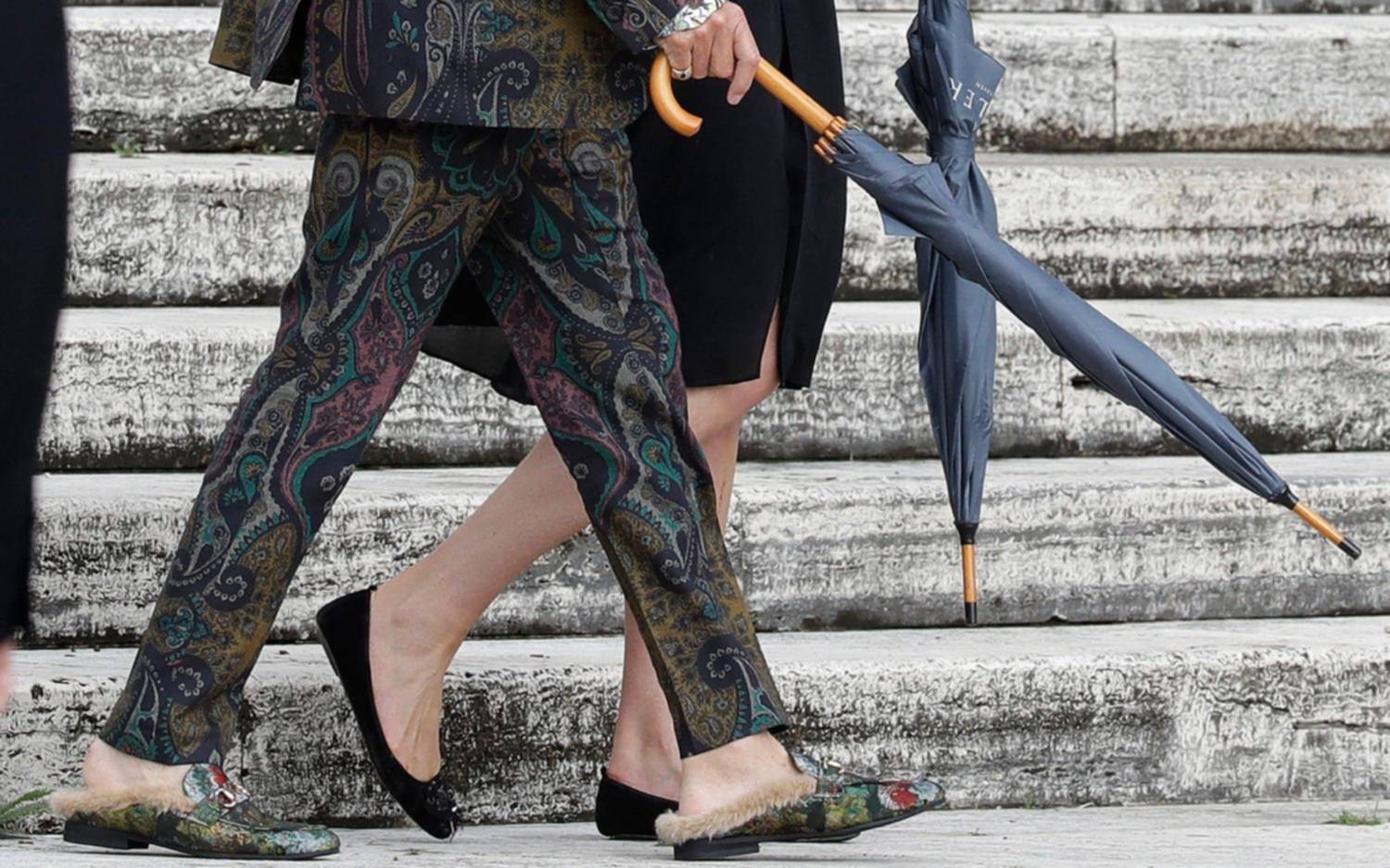 El cantante escocés Rod Stewart eligó un singular vestuario para acudir, junto a su pareja Penny Lancaster, a la audiencia con Francisco en El Vaticano.