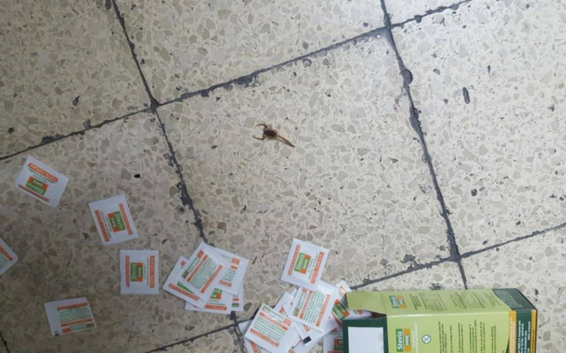 Un alacrán causó este mediodía un momento de tremendo susto a empleados de la fiscalía platense. Desde el subsuelo del edificio de 7 entre 56 y 57, precisamente desde el área de Sistema de Investigaciones Criminalística, se indicó que el arácnido fue divisado dentro de una caja de un conocido producto endulzante sin calorías, lo que sembro preocupación porque unos minutos antes habían retirado algunos sobres de ese envase de cartón.