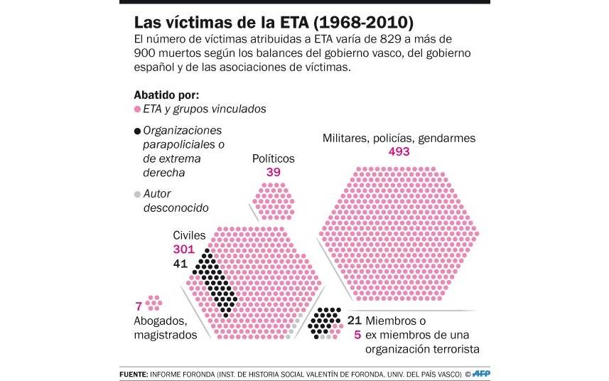 La disolución supone la desaparición de la última insurrección armada de Europa occidental. A ella se le atribuyen al menos 829 muertos, entre ellos Luis Carrero Blanco, presidente del gobierno de Franco cuyo coche salió volando en un atentado con bomba en Madrid en 1973, o el joven concejal Miguel Ángel Blanco, asesinado de dos tiros en la nuca en 1997.