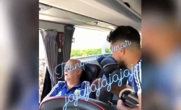 El colaborador dormía plácidamente en uno de los asientos del micro que ya había llegado a destino y los futbolistas lo despertaron de golpe. El Kun fue el autor material de la broma, mientras que el Fideo se encargó de filmar el momento.