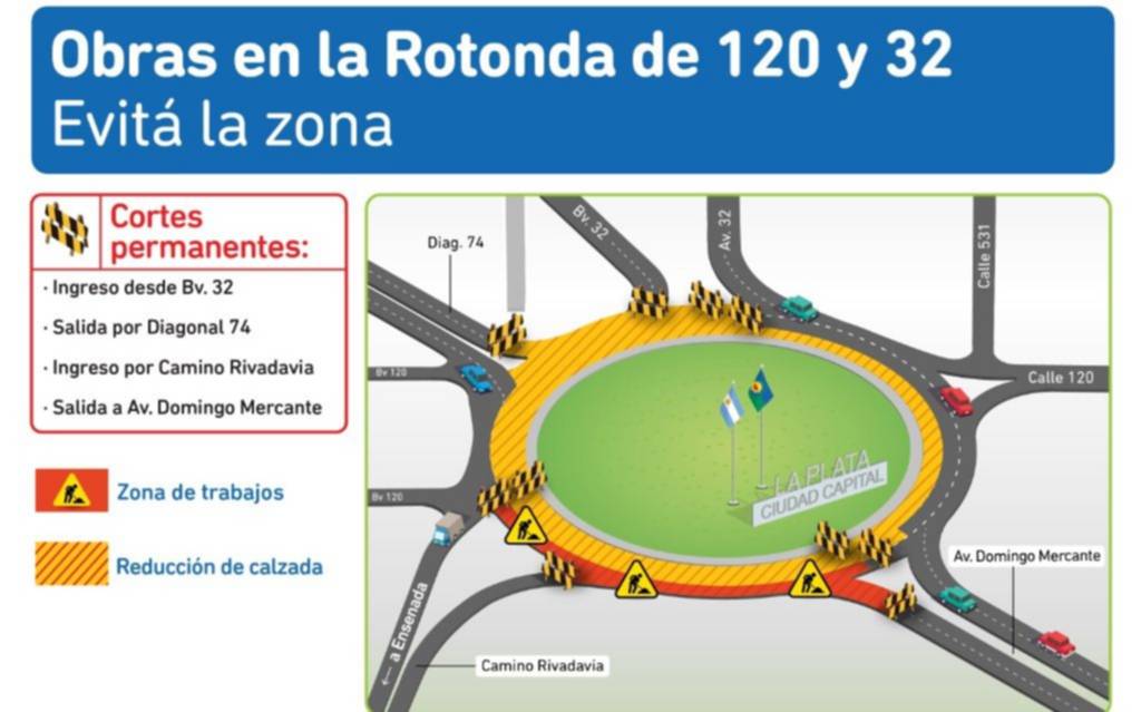 Desde hoy se sumaron los cambios para circular en las inmediaciones de la rotonda de 120 y 32, a metros de la Autopista, por lo que sólo se puede acceder a la Autopista Buenos Aires-La Plata por avenida 122. Además el ingreso a La Plata desde la autovía seguirá siendo por avenida 32; y el acceso desde Ensenada será por avenida 38.