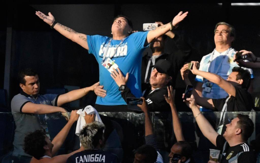 Sin dudas, más allá del triunfo, el pase a Octavos, los goles de Messi y Rojo, quien estuvo en boca de todos fue Diego Maradona. Que empezó a pura sonrisa y terminó con un susto, al descompensarse en el Palco.
