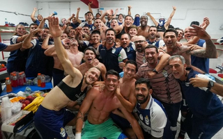Leandro Benítez en pleno diálogo con Mariano Pavone y Gastón Fernández / Roberto Acosta