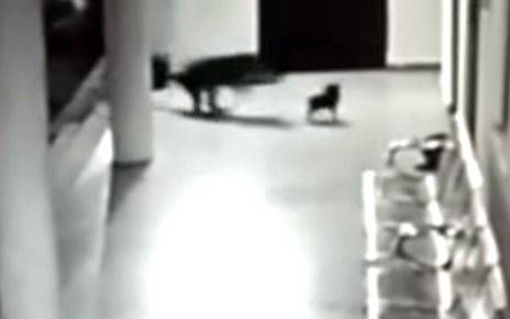 Una cámara de seguridad de una casa de la India, captó el dramático momento en el que un leopardo intenta capturar a un pequeño cachorro, que fue salvado por su madre ya que frustró el ataque haciéndole frente al feroz felino.