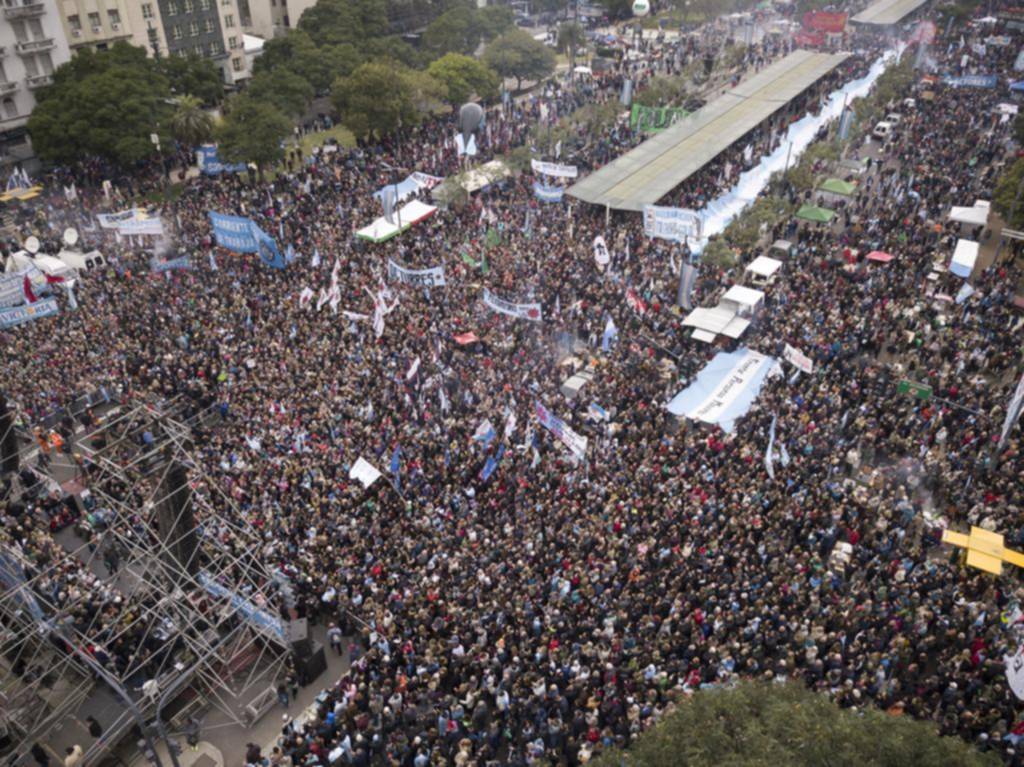 Tras la actuación de bandas musicales, el nuevo concluyó con la lectura de una proclama en rechazo al pacto, por el que el Fondo dará a Argentina financiación por 50.000 millones de dólares durante tres años, un acuerdo que incluye ambiciosas metas para lograr el equilibrio fiscal y controlar el alto nivel de inflación.
