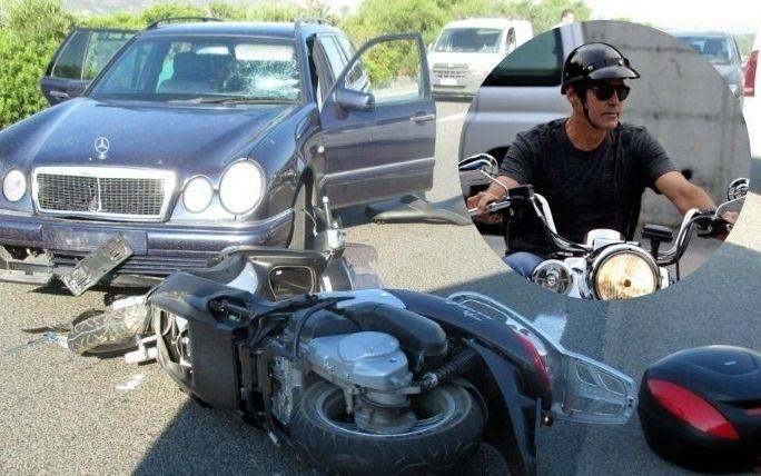 Ahora se dio a conocer un video que muestra el momento en que el actor, que se hallaba cerca de la localidad Costa Corallina, en el noroeste de Cerdeña, vuela por los aires instantes después de que su scooter se estrelló con un automóvil.
