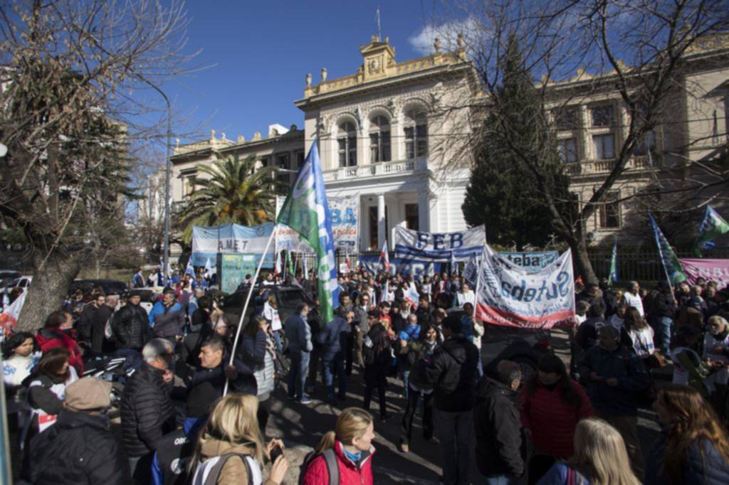 Luego de la protesta frente a la cartera educativa la manifestación acompañó, a la tarde, desde el acceso del ministerio de Economía, a los dirigentes del frente gremial mientras se llevó adelante la reunión paritaria del sector.
