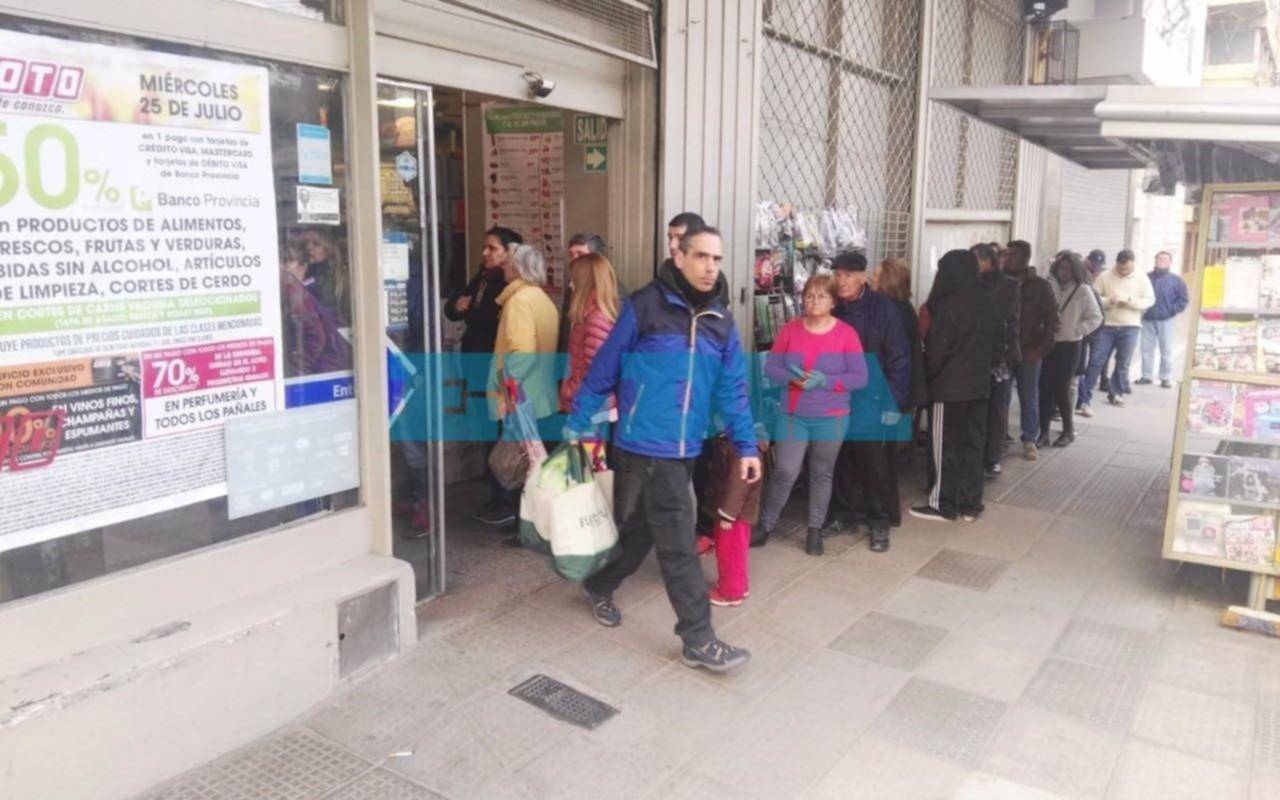 Los supermercados adheridos a la promoción del 50% de descuento con las tarjetas del Banco Provincia volvieron a amanecer con colas. En medio de la crisis y una creciente inflación los vecinos se las rebuscan para pagar menos y es por eso que aprovechan esta oportunidad, exclusiva de la entidad bancaria bonaerense, que tiene tope de reintegro de $1.500.