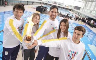 Sebastián Crismanich, medalla dorada en el taekwondo de Londres 2012 fue el portador de la llama que hizo el recorrido más largo dentro del Centro Acuático. Luego fue Victoria Saputo, boxeadora y campeona panamericana juvenil, la que continuó con el traslado del fuego Olímpico.