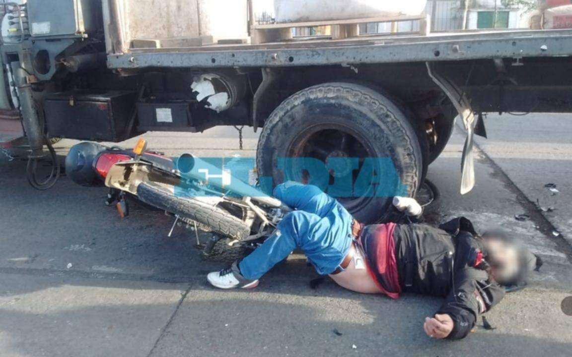 Fuerte choque entre un camión y una moto en 520 y 115