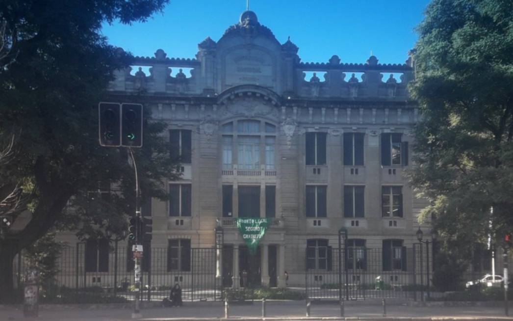 En el marco del "estudiantazo federal", este martes la Universidad Nacional de La Plata colgó un pañuelo verde en el Colegio Nacional.