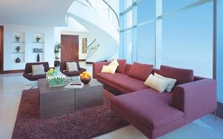 Lo ideal para el salón del dúplex es distribuir un sofá en forma de “L” hacia el ventanal con cortinados para aprovechar las paredes laterales.