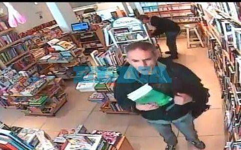 En un video proporcionado por el comercio a los investigadores se lo ve a este ladrón de libros en el momento exacto en el que comete el ilícito.