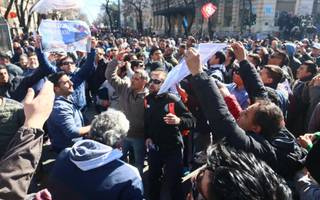 Arrojaron piedras contra los agentes de Infantería, que respondieron con gases lacrimógenos y balas de goma para dispersar a la multitud. Incluso, denunciaron que un patrullero atropelló a un trabajador, vehículo que luego fue destrozado por los manifestantes.