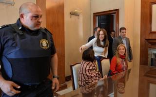 Perroni y Banegas, ayer frente a la Gobernación/Roberto Acosta