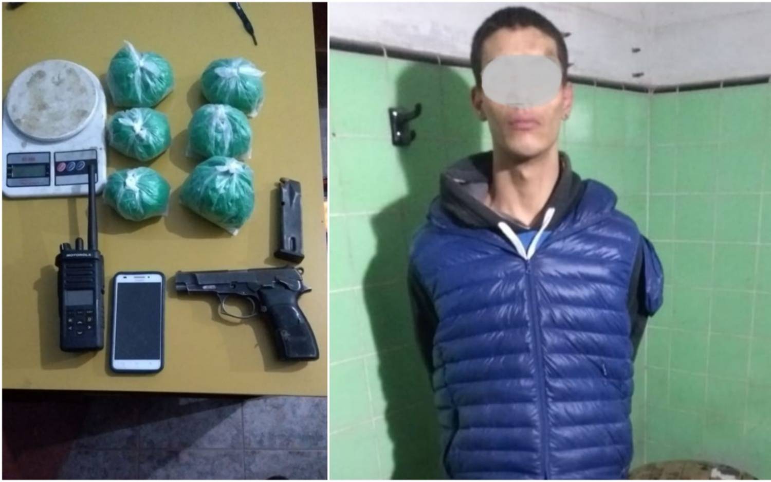 El hecho ocurrió en las inmediaciones de calle Hudson al 1000, cuando los policías, tras ver el accionar delictivo, se dirigió a esposar a los dos sujetos quienes se dieron a la fuga y el "vendedor" que llevaba una mochila, se escondió en una vivienda y al verse rodeado arrojó la mochila frustrando la huida por los fondos de la finca, para luego ser arrestado.