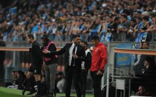 En ese instante, no hubo un ser humano en el Arena do Gremio que no imaginase lo peor. Los jugadores se miraban y no lo podían creer. Tampoco en el banco de los suplentes. Vibraban los vidrios de la cabina de prensa y no paraban de gritar los hinchas locales. Hasta que un rechazo de Geromel quedó en poder de Lucas Rodríguez: probó una vez y tapó el arquero, pero en la segunda clavó el gol con un remate alto y fuerte. Sorpresa, silencio y volver a empezar cuando el partido llevaba recién 8 minutos.