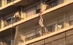 Según puede observarse en las imágenes del video, los cuatro vecinos hicieron maniobras desesperadas para intentar que no cayera al vacío y encontrara una muerte segura. El del 7mo piso, apoyado en la baranda, sostiene al pequeño por los pies, mientras que uno de los hermanos del nene ayuda como puede y no lo suelta. En la misma escena se ve la desesperación un hombre en el 5to piso y de una pareja del 10mo.