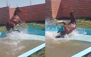 VIDEO. El chapuzón de un caballo en La Plata: andaba suelto y cayó en una pileta de una casa