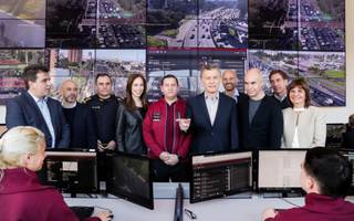 La delegación argentina en washington, con el ministro Nicolás dujovne al frente, rumbo al encuentro que sostuvieron con la prensa en la capital de EEUU/AP