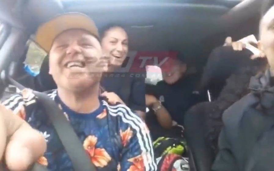 En el clip que circula desde hace varias horas en las redes, se puede a los tres efectivos uniformados dentro de su camioneta junto a dos civiles más, sin cinturón de seguridad, mientras el cantante entona una canción contra la fuerza y ellos ríen y festejan.