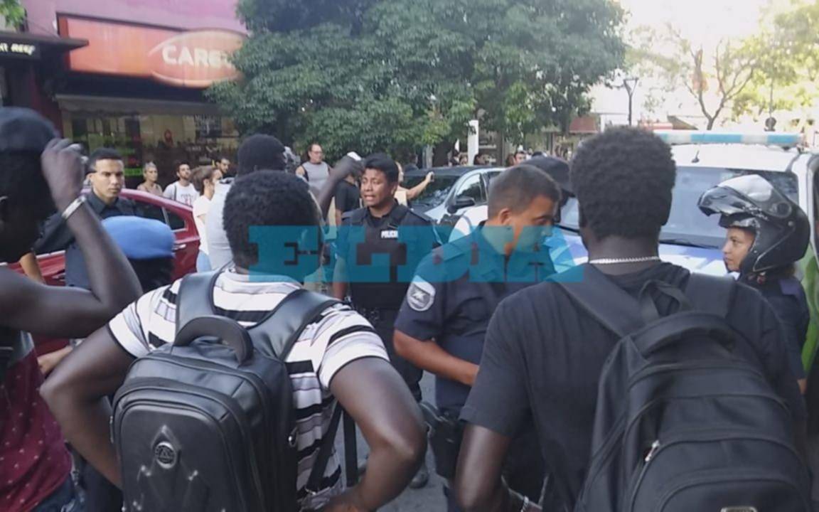 Brenda, una de las presentes, aportó imágenes a través del Whatsapp del diario El Día, aseguró que hubo "golpes" y que los senegaleses "reclaman su mercadería", ya que "un patrullero cargó todo y se la llevó".