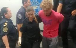El traslado de uno de los tres detenidos a la sede de la ddi, en 61, 12 y 13. Hoy declararían / demian alday
