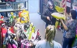 Frente al negocio, en tanto, quedó esperándolo con la moto en marcha su cómplice, como lo muestra la filmación de una cámara de seguridad que registró el episodio desde distintos ángulos.