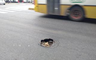 Vecinos advirtieron por la precariedad que presenta un poste en 3 y 520,en la vereda correspondiente a Ringuelet. Es una estructura partida a la mitad pero que está sostenida con alambres”, dijo Angela.
