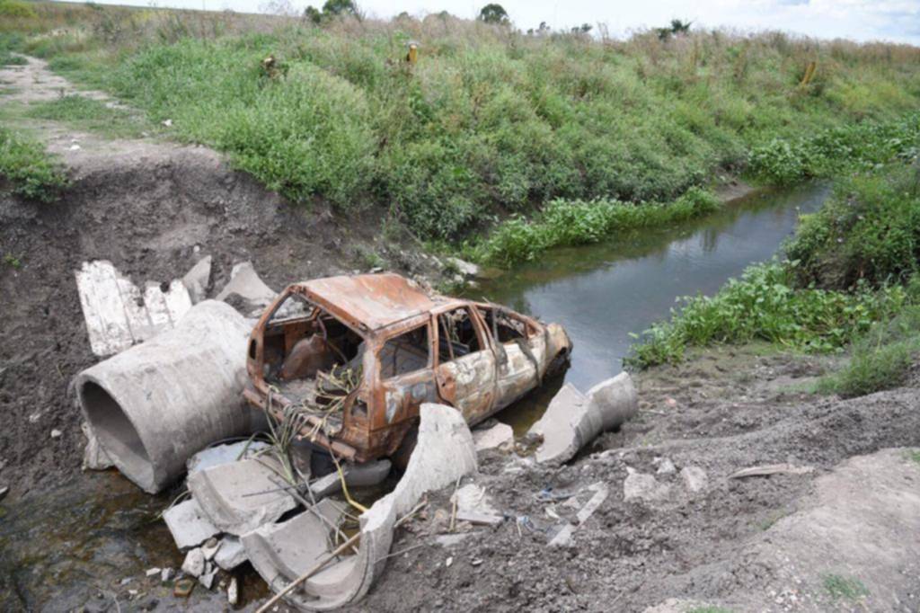 Allí se verificó la presencia de un auto quemado y abandonado junto a restos de caños de desagüe partidos, que actuaban como dique de contención.