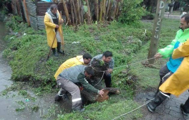 En ese contexto, desde la Comuna hablaron de “boicot” al sistema de desagües ya que los dos grandes trozos de árboles habrían sido arrojados “a propósito” en ese canal.