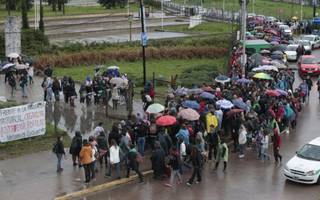 La lluvia no es feminista. Era la broma corriente en la mañana de ayer entre las asistentes al 34ª Encuentro Nacional de Mujeres, cuyo acto inaugural fue suspendido a las 7,30 a causa de las condiciones climáticas. La tormenta, sin embargo, no evitó que alrededor de 5 mil mujeres -según estimaciones de las organizadoras- convocadas en el Parque Alberti por la Campaña Somos Plurinacional marchara desde 25 y 38 hasta 529 detrás de la bandera Encuentro Plurinacional de Mujeres, Lesbianas, Travestis, Trans, Bisexuales y No Binaries, en demanda del cambio de nombre, una de las principales discusiones que atraviesa por estas horas el movimiento feminista.