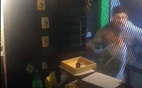 La dramática secuencia quedó filmada en las cámaras de seguridad del negocio, en donde además puede escucharse todo el diálogo. El delincuente, para intentar que el patrullero no lo detecte, obligó al personal a esconderse con él, que en todo momento le pide que se tranquilice.