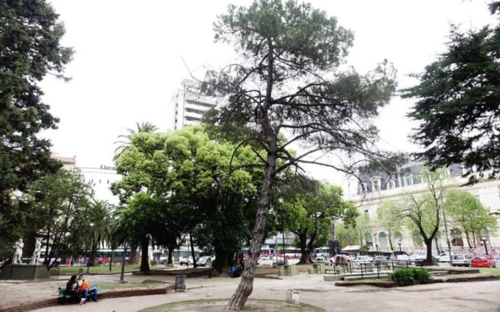 Tal como se destacó, el pino se encuentra en mal estado. Ubicado sobre un cantero circular, a metros del frente de la plaza que da a calle 50, muestra hoy muchas ramas secas, una copa empobrecida y se lo advierte, en forma ostensible, desprovisto de mantenimiento y con la falta de toda señal que lo distinga. Así viene agonizando hace años.